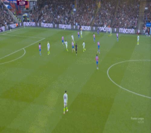 不过,人还在,精力不可能和上赛季类似,所以哪怕在主场,水晶宫依然保守应对,直至第10分钟,采用连续争高球的方式打进了禁区: