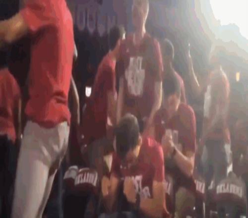 当年NCAA锦标赛的分区对阵揭晓直播中,杨所在的俄克拉荷马大学处于晋级边缘,球队全程被镜头记录。当得知球队成功入围时,所有队员都起身相互庆祝——唯独杨没有。当然,他也很开心,但与众不同的是,队友们都围绕着他庆祝,而非与他一同庆祝,这一场景格外引人注目。