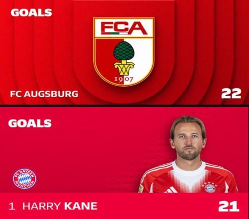 就在奥格斯堡在社媒上嘲讽“凯恩没来”约4个小时后,奥格斯堡在评论区晒出了球队和凯恩的进球数据:凯恩本赛季已打进21粒联赛进球。奥格斯堡目前本赛季的联赛进球为22球,仅超出凯恩1球。