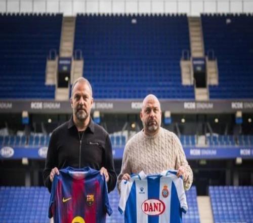 传统环节,加泰德比前弗里克与西人主帅马诺洛举球衣合影
